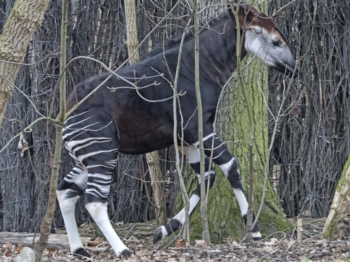 A younger okapi at a zoo in Leipzig, Germany, in 2015.