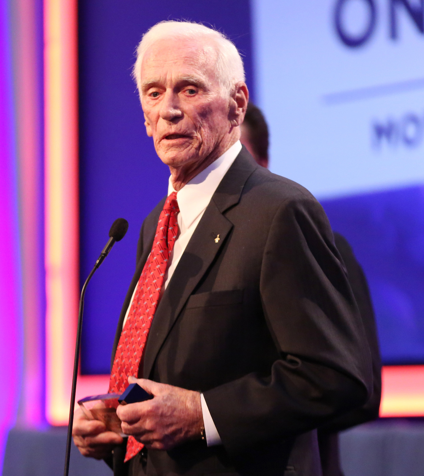 Retired astronaut Gene Cernan accepts an award from AARP in February 2016 for his documentary movie, Final Man on the Moon.