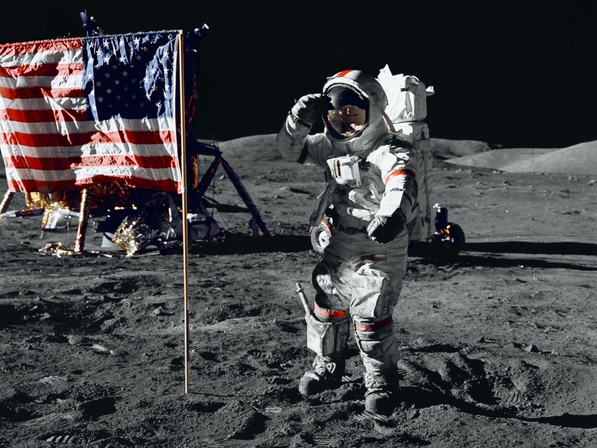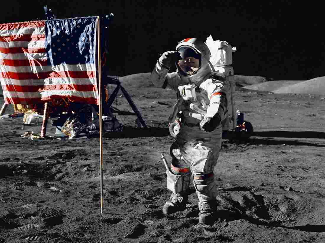 Astronaut Gene Cernan salutes the U.S. flag throughout his moonwalk in 1972. Nobody else has been there since Apollo 17 left.